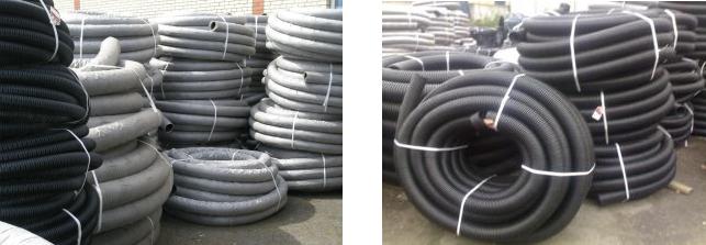 Обычно, для того чтобы обеспечить более высокий уровень надежности полиэтиленовых дренажных труб, их внешние поверхности дополняются специальным гофрированным покрытием. Такие трубы могут обладать разным диаметром, обычно от 60 до 200 миллиметров. Продаются трубы в бухтах, длина приспособлений зависит от диаметра, в одной бухте находится труба длиной от 40 до 50 метров.